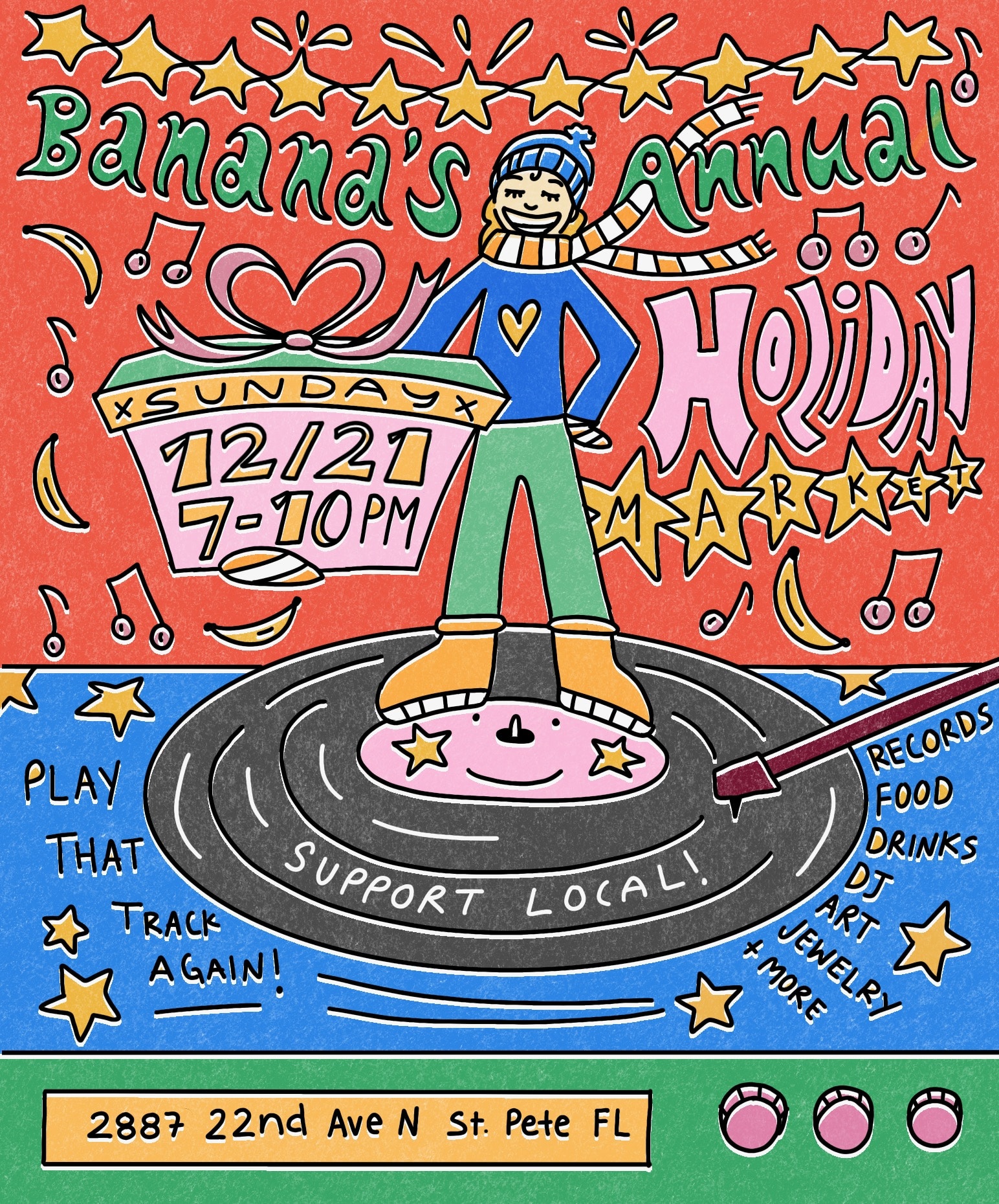 December 12th is our Holiday Market! From 7 PM TO 10 PM you can come listen to some tunes, grab some records, art, take a picture with Santa, grab a bite to eat, play mahjong, and shop! The event is open to anyone and everyone and will be the perfect place to snag a last minute gift. The market is at our retail location at 2887 22nd Ave N. More information about vendors is on our Instagram and Facebook.